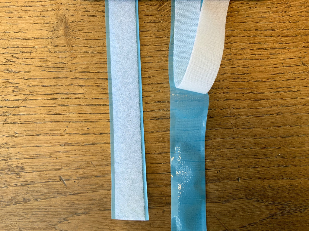 Loop & hook stick on velcro. Also available in black and as sew on.