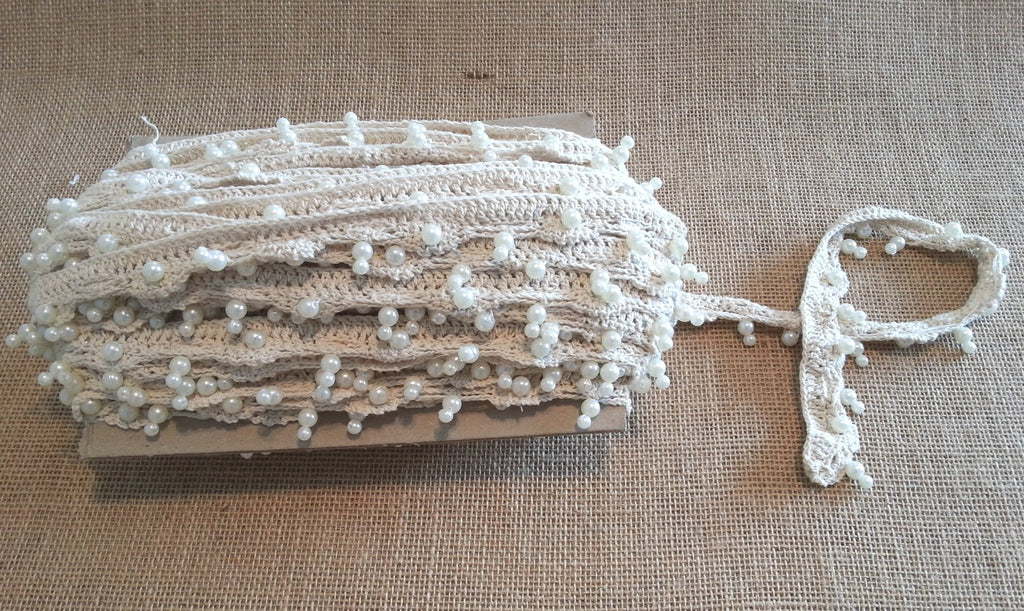 Beaded, crochet trim, suitable for dressmaking, craft,and accesories.