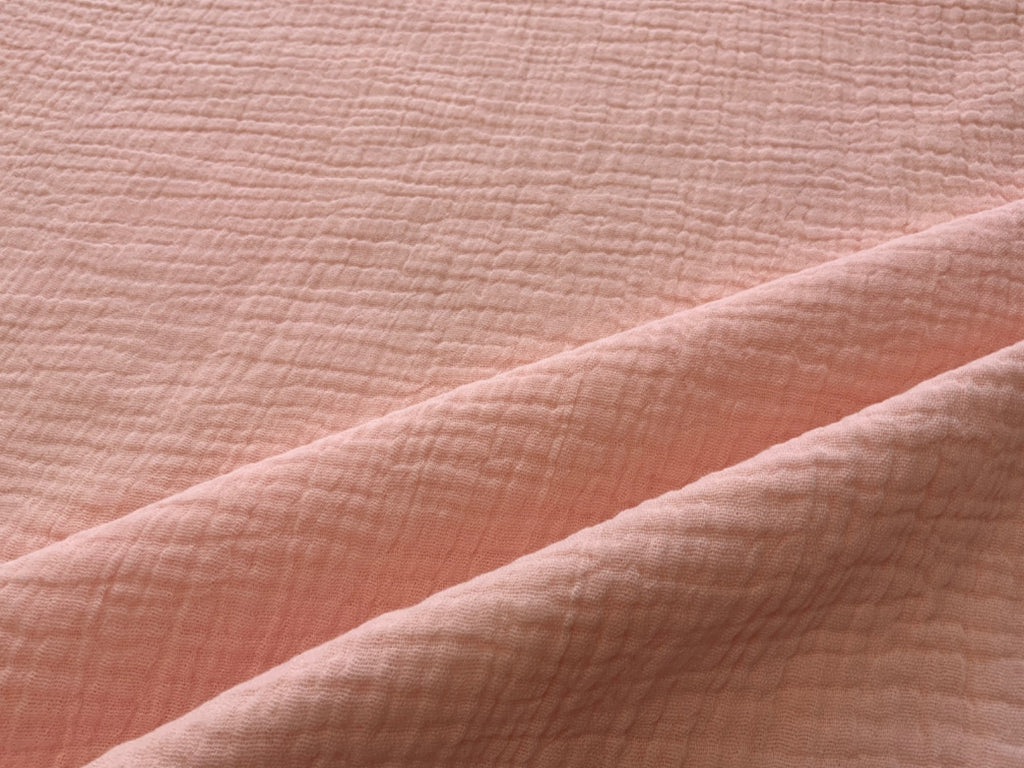 Double Gauze is a lovely lightweight pure cotton fabric with a relatively loosely weave and a crinkled natural texture making it exceptionally breathable with a gorgeous soft handle. As the name suggests the fabric is made up of 2 layers of fine cotton similar to a lioght cheese cloth or muslin that are tacked together. The double layer reduces the transparency of the cloth and gives it a thicker more tactile finish. Our cloth is 126gsm and Oeko-Tex Standard, ideal for clothes, childrens/baby items, quilts etc.