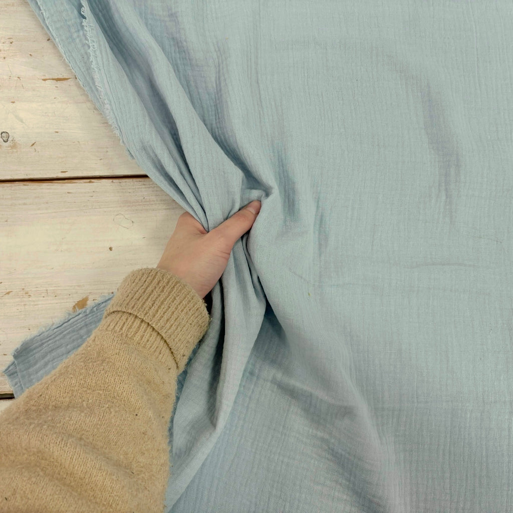 As the name suggests, Double Gauze is crafted from two fine layers of cotton, similar to light muslin or cheesecloth, carefully tacked together. This clever construction reduces transparency while adding subtle body and a more tactile, comforting finish. The result is a fabric that feels airy yet reassuringly substantial.