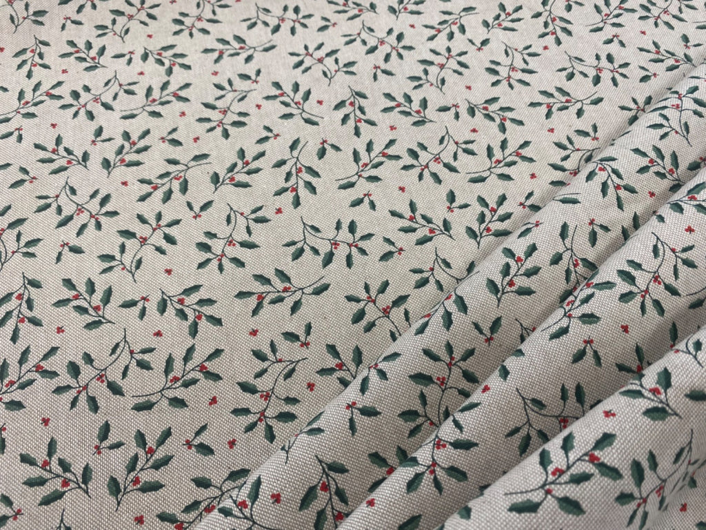 Christmas print cotton mix fabric, suitable for curtains, blinds, dressmaking and soft furnishings. Free samples available.