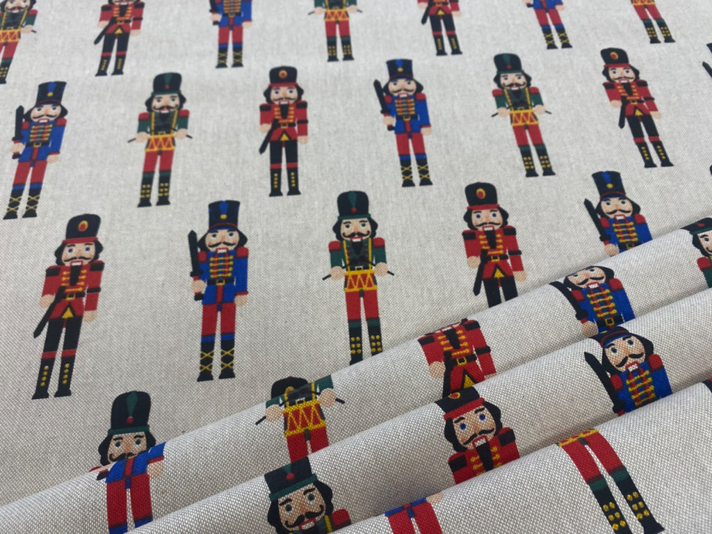 Christmas print cotton mix fabric, suitable for curtains, blinds, dressmaking and soft furnishings. Free samples available.