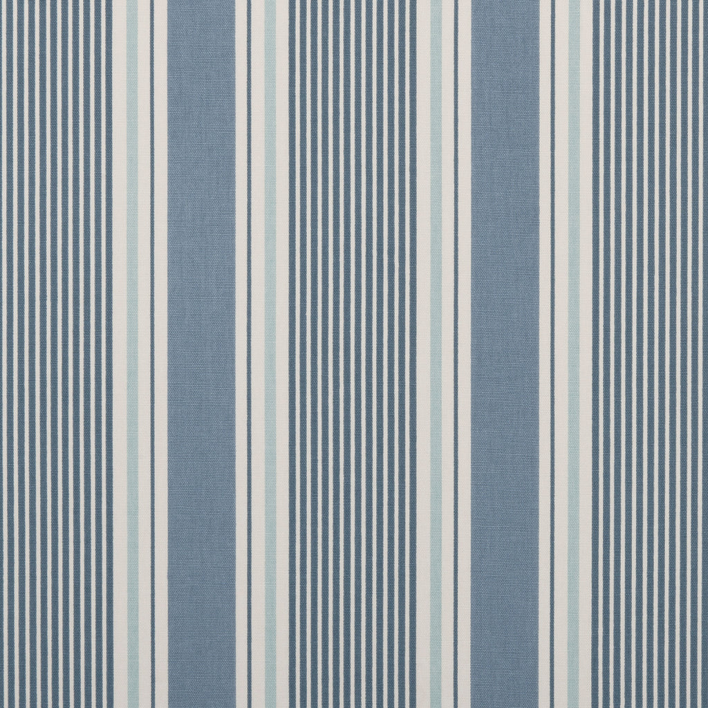 100% Cotton blue stripe print curtain, soft furnishing and general domestic upholstery fabric. Free samples available.