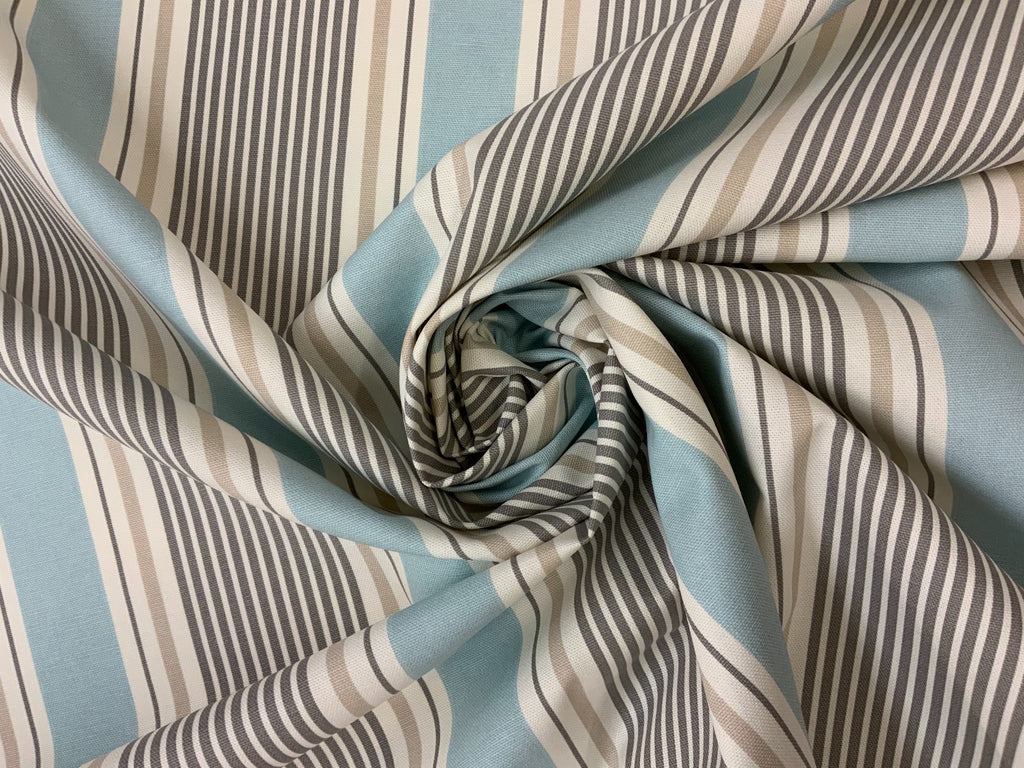 100% Cotton stripe print curtain, soft furnishing and general domestic upholstery fabric. Free samples available.
