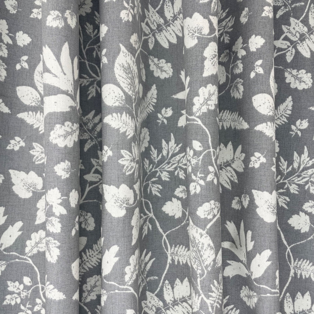 Bellever is a midscale leaf trail with a linen look texture running throughout. Forest inspired ferns and maple leaves meander throughout this tonal 100% cotton fabric, which retains a traditional block print appearance.