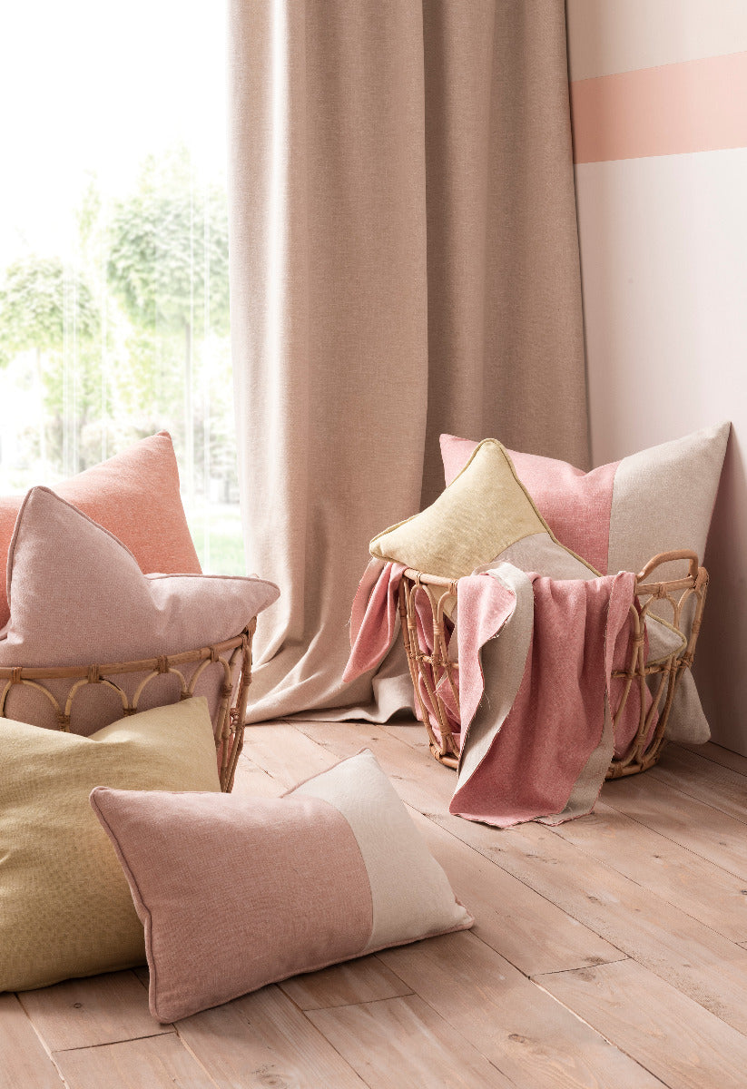 Hard wearing linen look fabric suitable for curtains and upholstery. Free samples available.