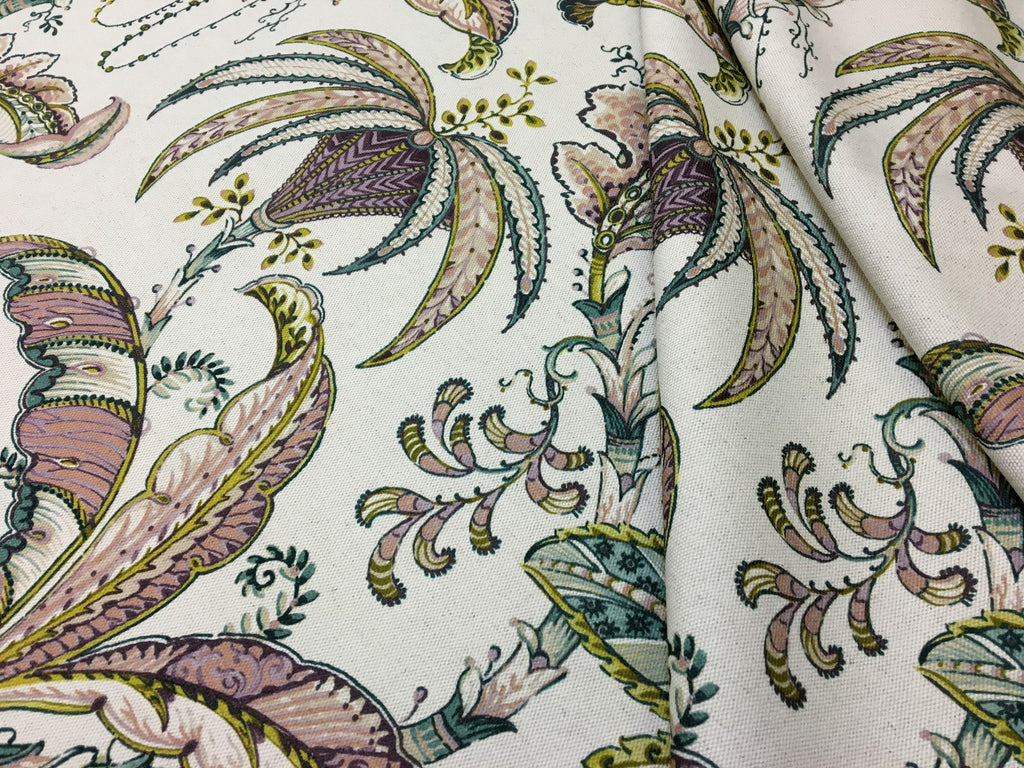 This fabric is part of the stunning Eden collection its fresh realism brings hand drawn elements to life. A fusion of the 'English country garden' and ornate damasks, Eden brims with vitality and colour. Wild ferns, rambling leafy trails and bejewelled dragonfly prints dance on a dual-purpose 100% BCI Cotton quality. Perfect for curtains, blinds and all soft furnishings this cloth even have a 18,000 martindale rub test so can also be used for occasional upholstery. Free samples available