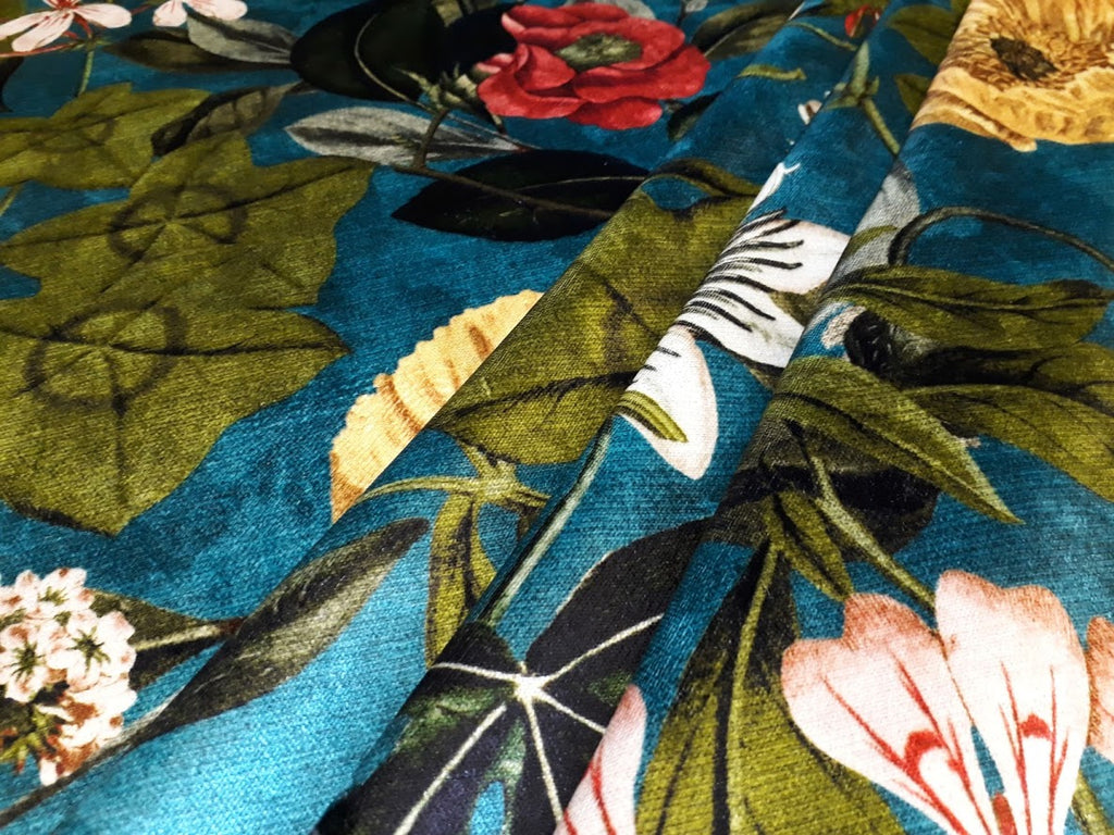 Beautiful velvet fabric, suitable for curtains and upholstery. Free samples available.