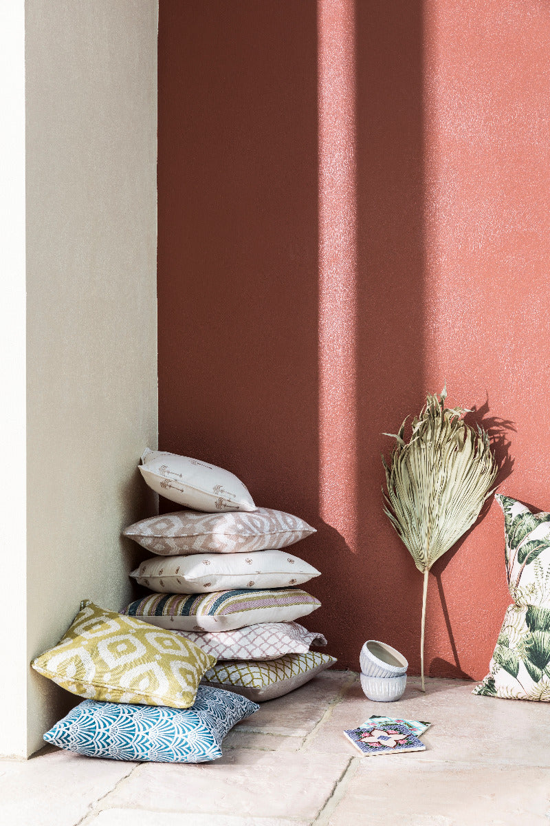 This fabric is from a collection featuring painted palm trees, architectural geometrics and metallic threads, inspired by filigree and glimmering coins. The prince of persia collection features The Prince himself on horseback journeying across desert sands in this eclectic collection which comprises of silk inspired plains, exotic prints, with co-ordinating weaves and embroideries. Bring the charm of middle east into your interiors with this stunning cloth.
