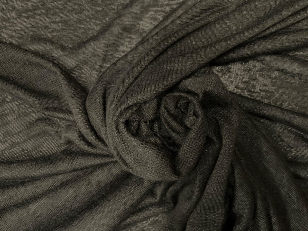 Black knitted fabric with a little stretch, suitable for dressmaking and craft projects. Free samples available.