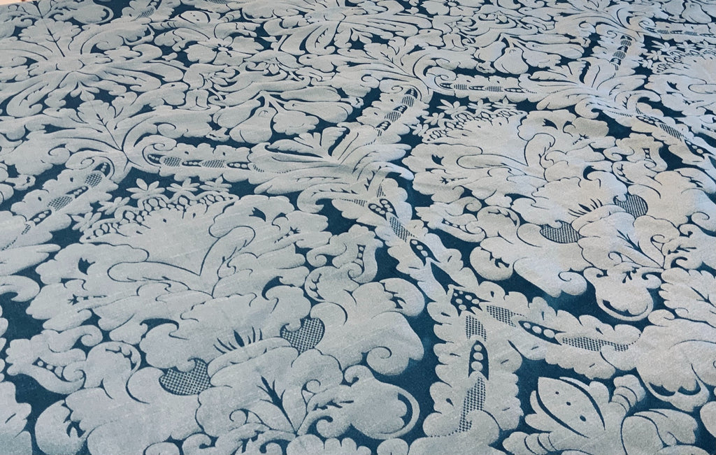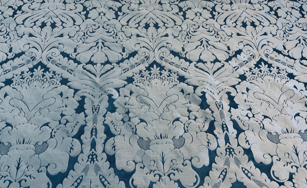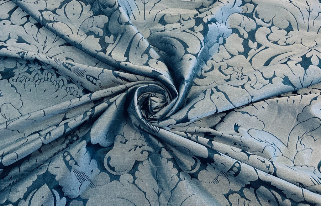 Faux silk damask fabric, suitable for curtains and soft furnishing. Free samples available.