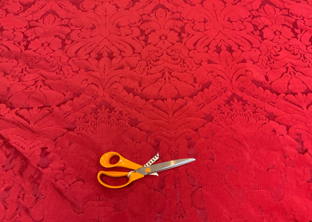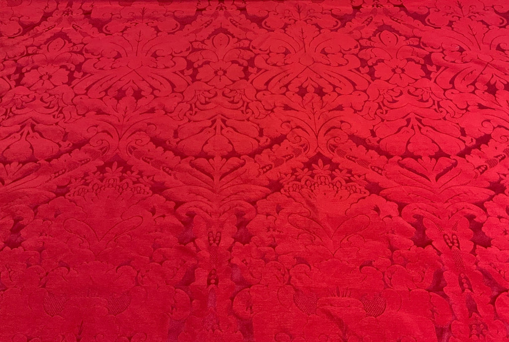 Faux silk damask fabric, suitable for curtains, blinds and soft furnishings. Free samples available.