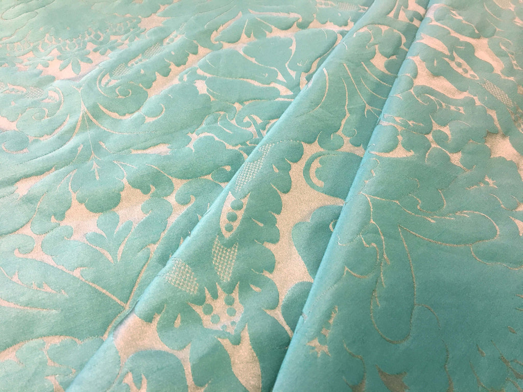 Faux silk damask fabric, suitable for curtains and soft furnishing. Free samples available.