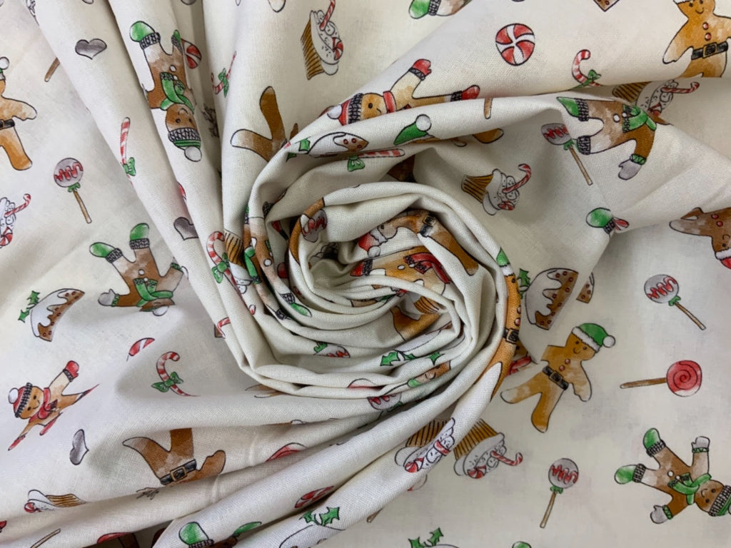 100% cotton printed Christmas fabric, suitable for dressmaking and craft. Free samples available.