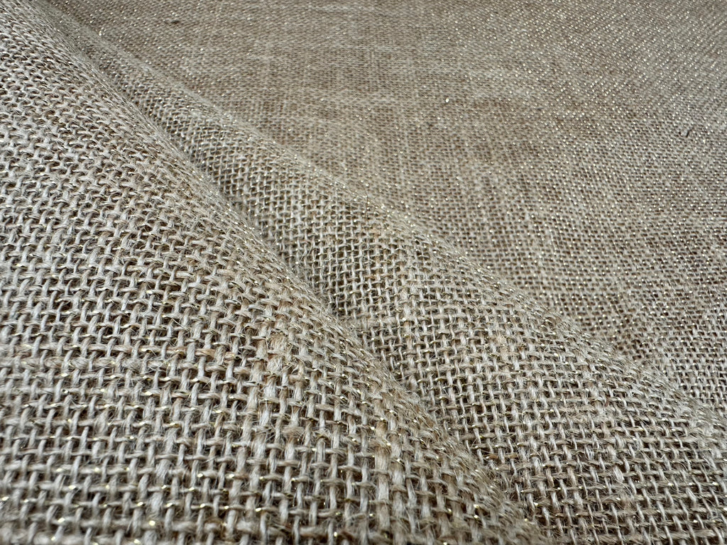 Add rustic charm and shimmering elegance to your crafts and décor projects with our Glitter Jute Hessian Fabric. Made from high-quality natural jute fibres, this sparkle hessian combines the classic texture of traditional burlap with a beautiful glitter finish – perfect for weddings, events, and creative DIY projects.