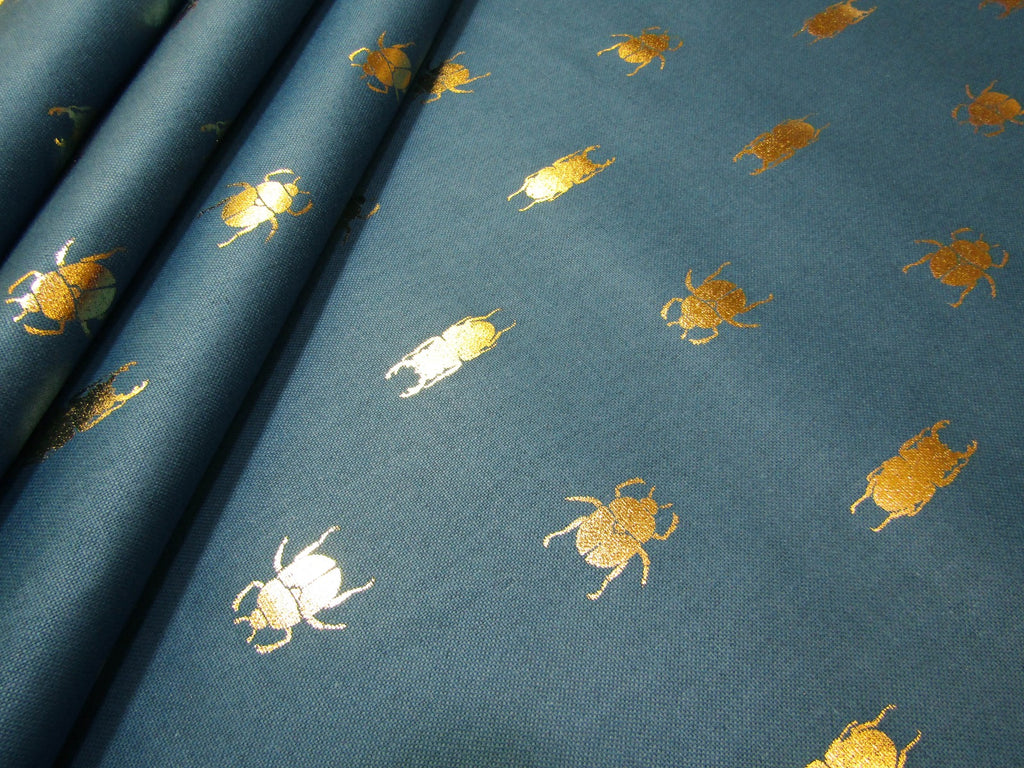 Foil printed fabric suitable for curtains, soft furnishings and lightweight upholstery. Free samples available.