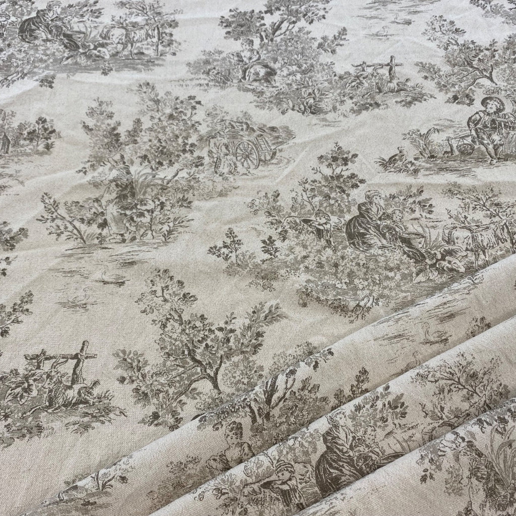 Bring timeless charm and French country elegance into your home with our Rustic Toile de Jouy Fabric, made from 100% natural cotton. Featuring traditional pastoral scenes printed in soft, earthy tones on a neutral cotton base, this high quality fabric is perfect for a range of interior projects.