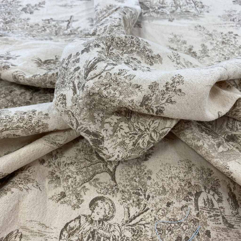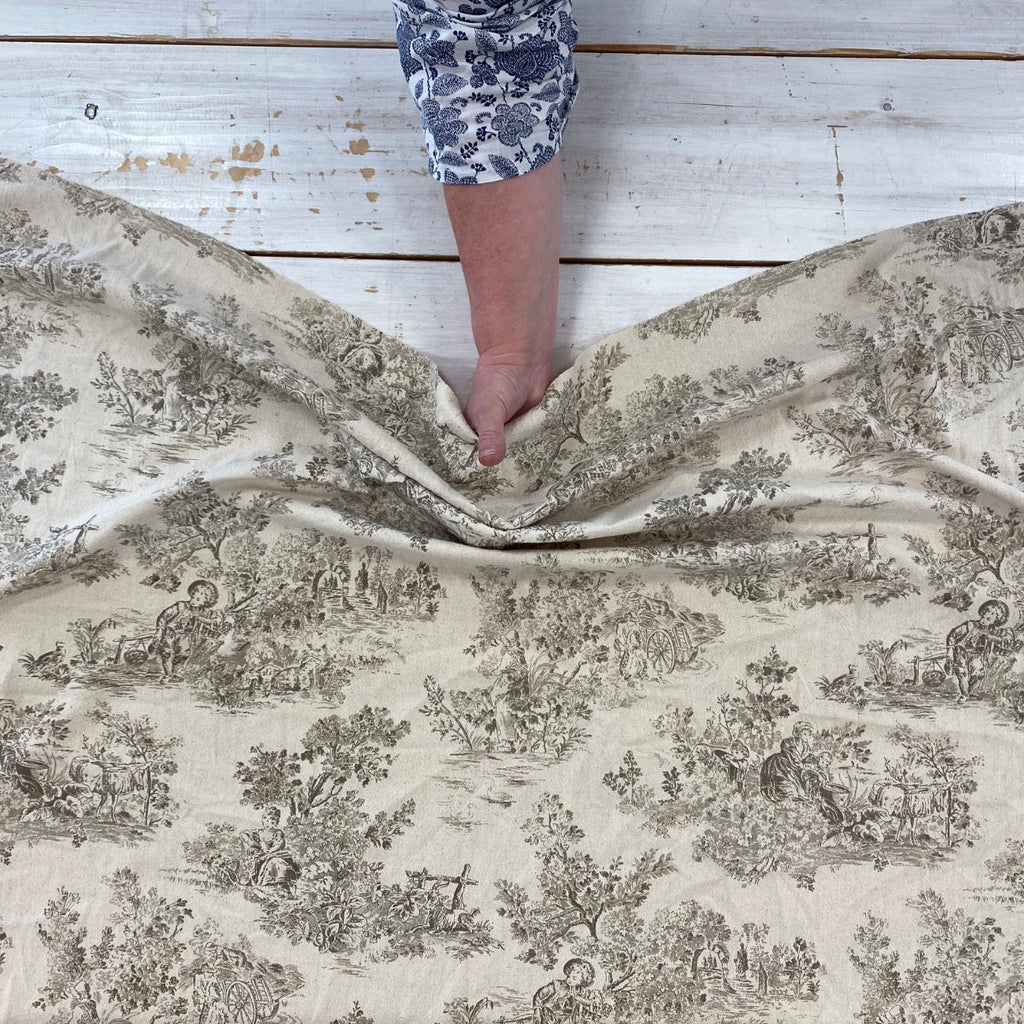 Rustic Toile de Jouy Fabric. 100% Natural Cotton Fabric for Curtains, Soft Furnishings and Light Upholstery