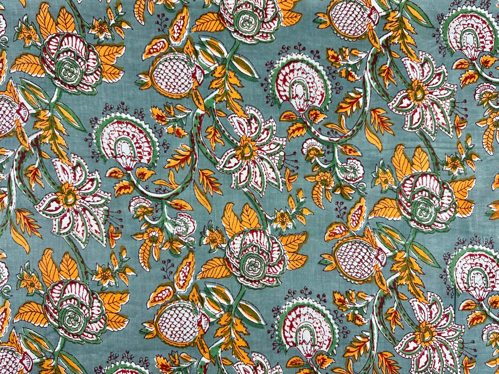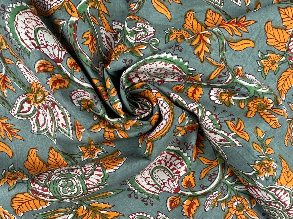 This beautiful printed cotton is the perfect fusion of traditional charm and modern comfort. Featuring a pretty floral design in a block print style, this fabric will add a touch of artisan elegance to any dressmaking project.