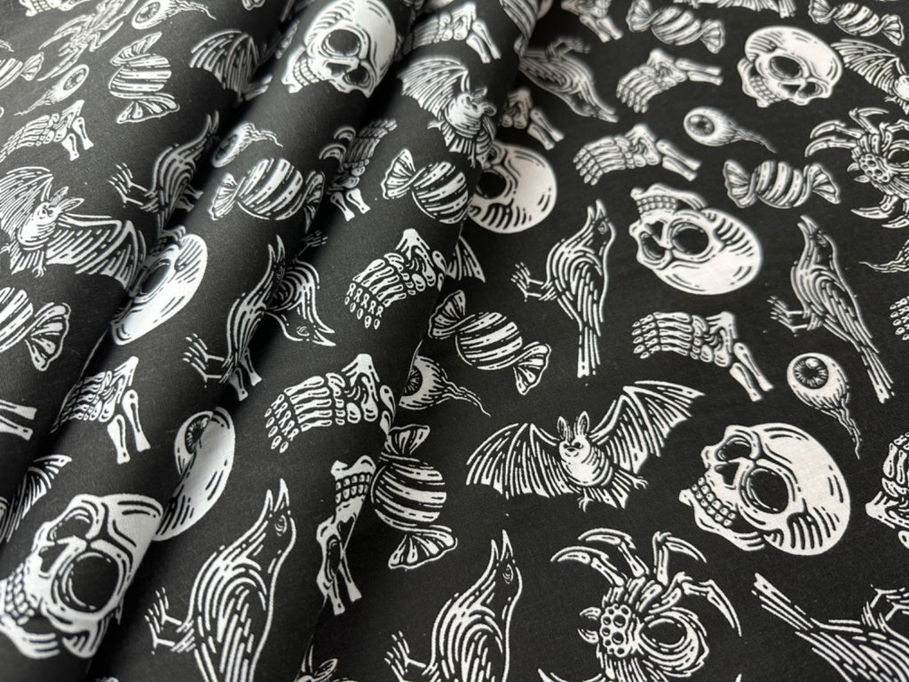 This spooky polycotton mix fabric is prefect for any Halloween dressmaking, craft and soft furnishing makes!