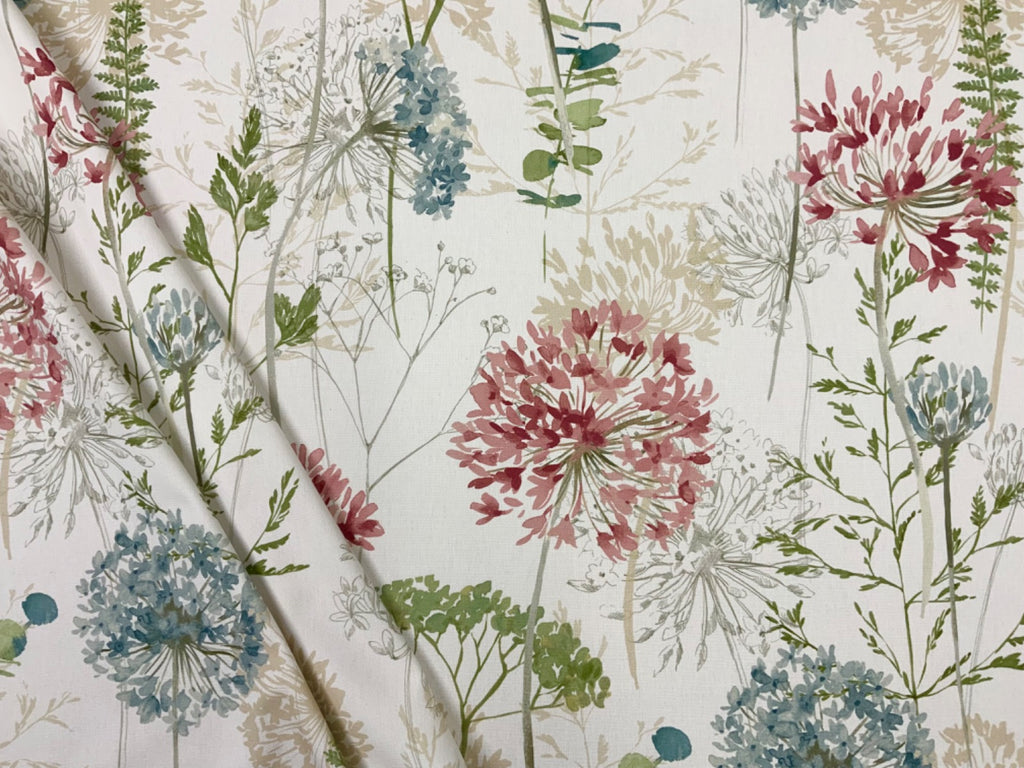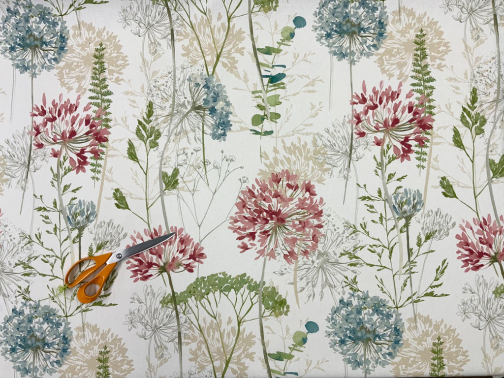 Inspired by nature this floral fabric is printed onto a sustainably sourced cotton base cloth. Part of the Country Journal Collection this fabric is perfect for curtains, soft furnishings and light upholstery.