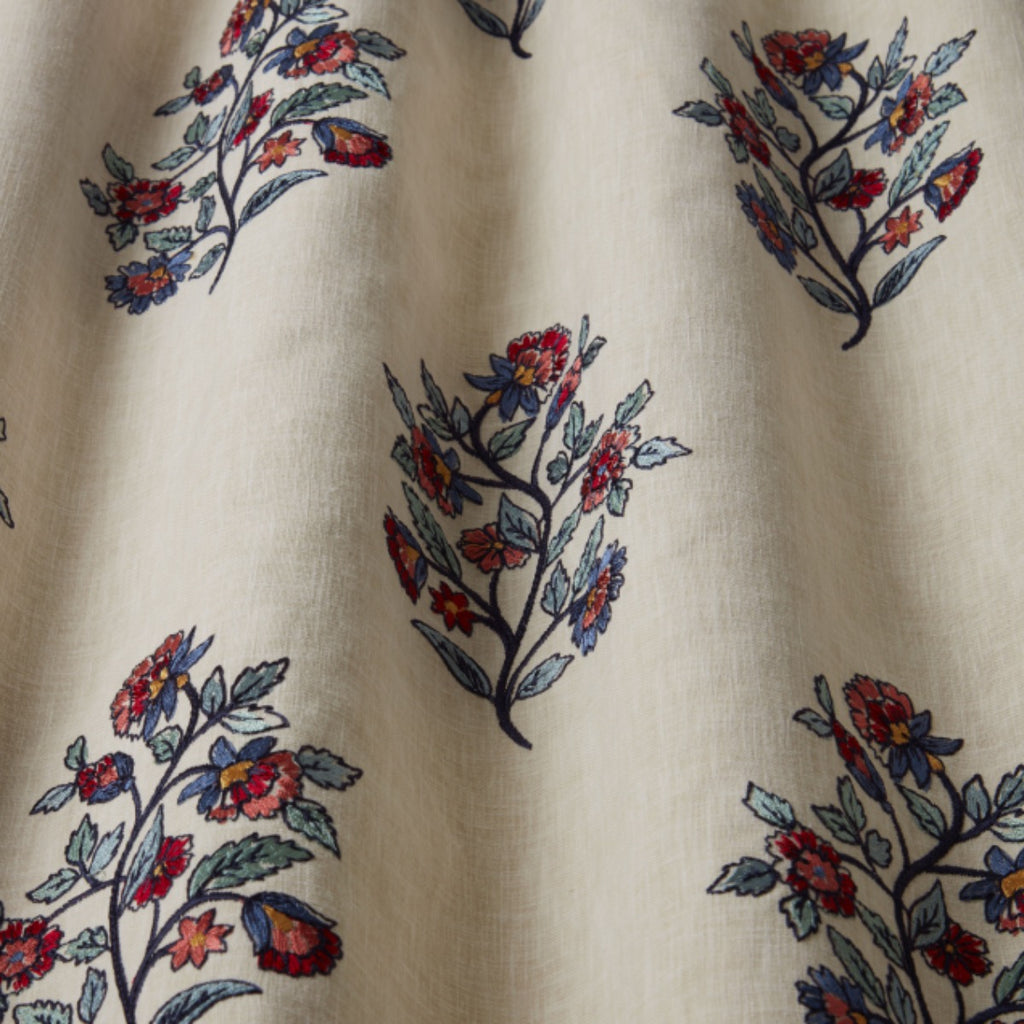 A beautiful Indian block print inspired embroidered fabric from the new iLiv Jaipuri collection. This embroidery suitable for curtains and soft furnishings.