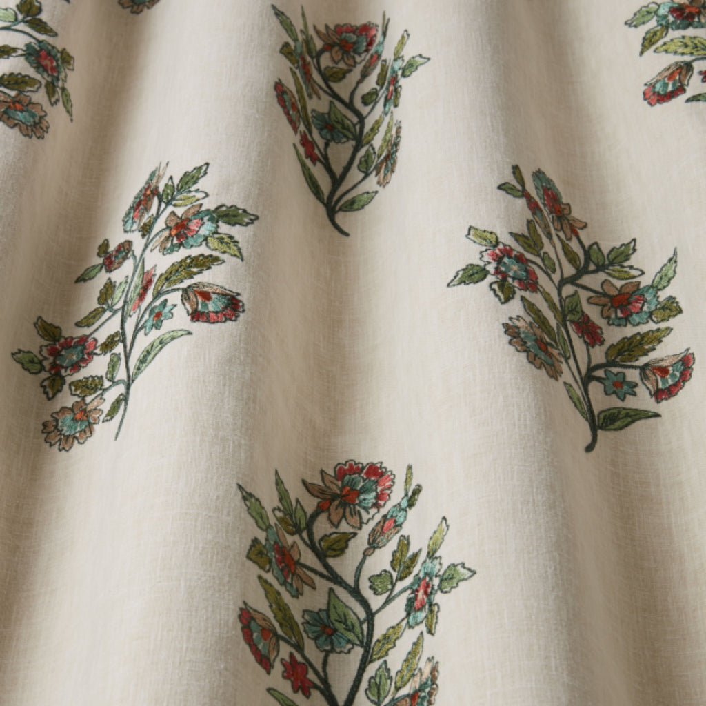 A beautiful Indian block print inspired embroidered fabric from the new iLiv Jaipuri collection. This embroidery suitable for curtains and soft furnishings.