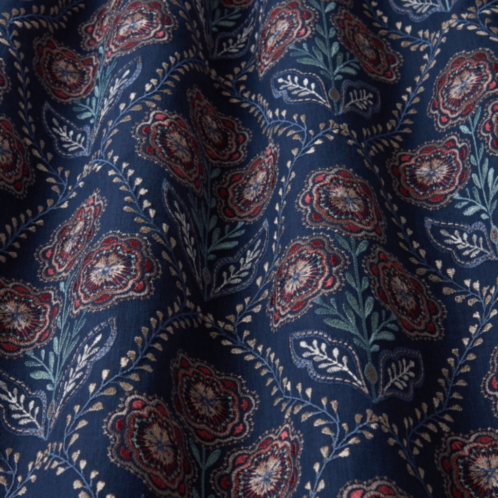 A beautiful Indian block print inspired embroidered fabric from the new iLiv Jaipuri collection. This embroidery suitable for curtains and soft furnishings.
