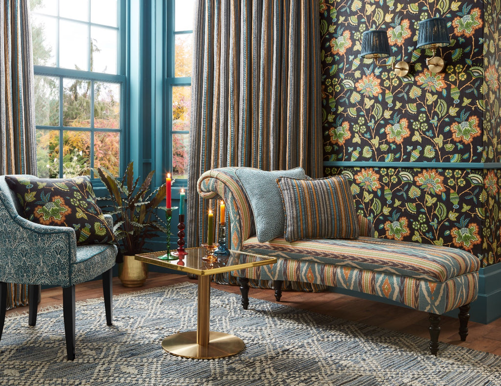 Part of the Babooshka Collection, this vibrant design embodies the spirit and the fashion of the 60's & 70's music festivals. This modern twist on retro design is printed on a stunning heavy linen mix base cloth, perfect for curtains, soft furnishings and upholstery.