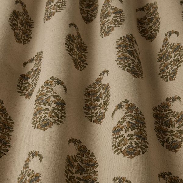 This floral paisley design is part of the Jaipuri collection which is inspired by Indian block printing techniques. Printed on a mid weight cotton linen base cloth this fabric is suitable for curtains and soft furnishings.