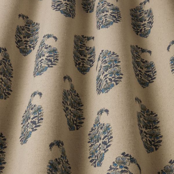 This floral paisley design is part of the Jaipuri collection which is inspired by Indian block printing techniques. Printed on a mid weight cotton linen base cloth this fabric is suitable for curtains and soft furnishings.