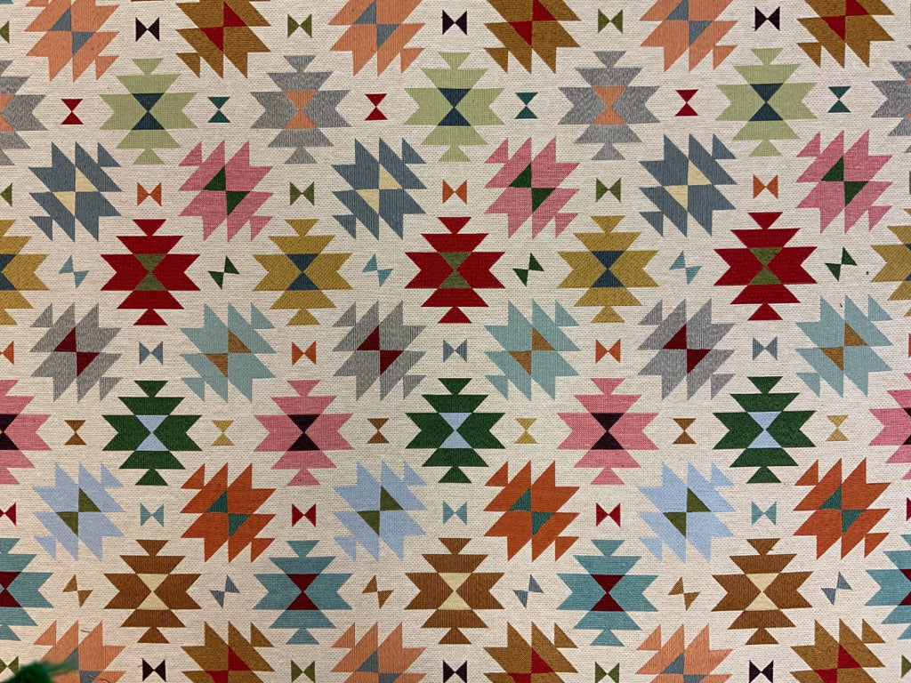This fun tapestry design is suitable for curtains, soft furnishings and light upholstery. Woven in Europe from 50% recycled fibres.