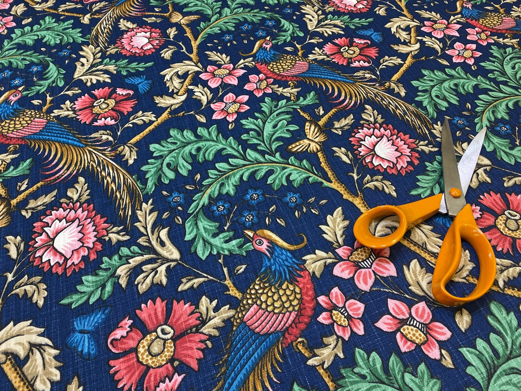 Printed cotton fabric suitable for curtains and upholstery. Free samples available.
