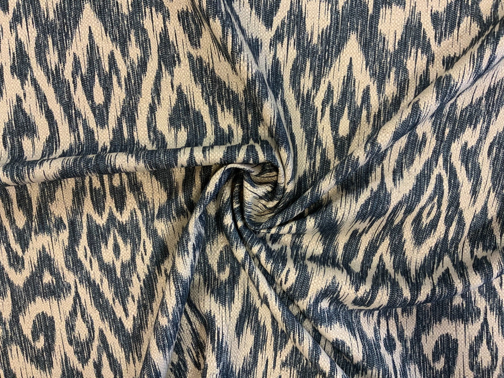 This stunning ikat design is printed on a soft handle linen mix base cloth. As it hangs beautifully it would make up into lovely curtains and could also be used for a variety of soft furnishings projects.