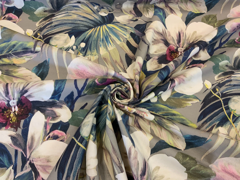This vibrant design is part of the South Pacific Collection from Prestigious Textiles, this fabric would be perfect for making curtains, blinds and soft furnishings. It is a 100% cotton fabric which has been digitally printed onto.