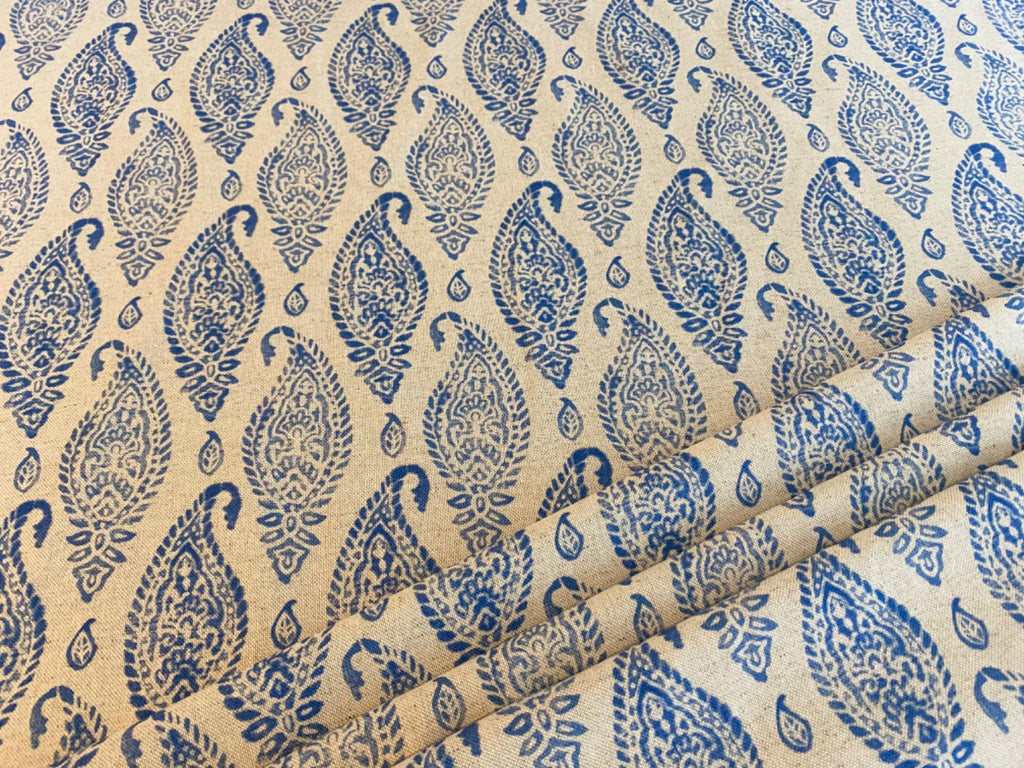 This is a lovely cotton linen mix, with a classic block print design, perfect for curtains, blinds and soft furnishings.