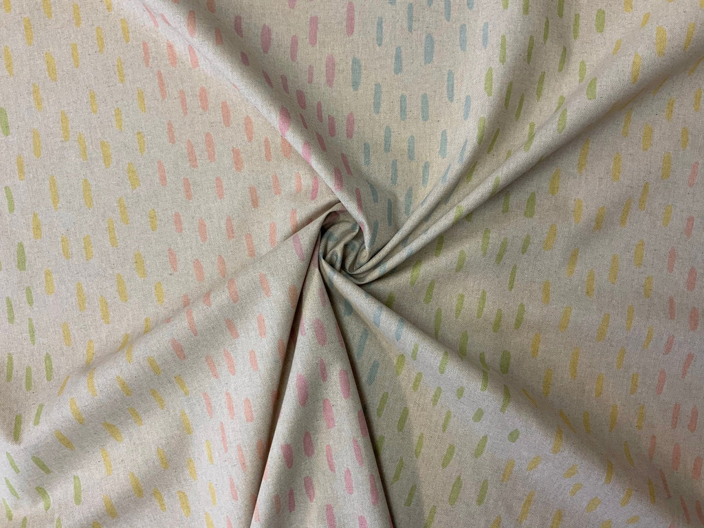 Printed on a lovely linen look cotton mix. This fabric would make fun curtains or blinds and also work fantastically for a variety of soft furnishing and craft projects.