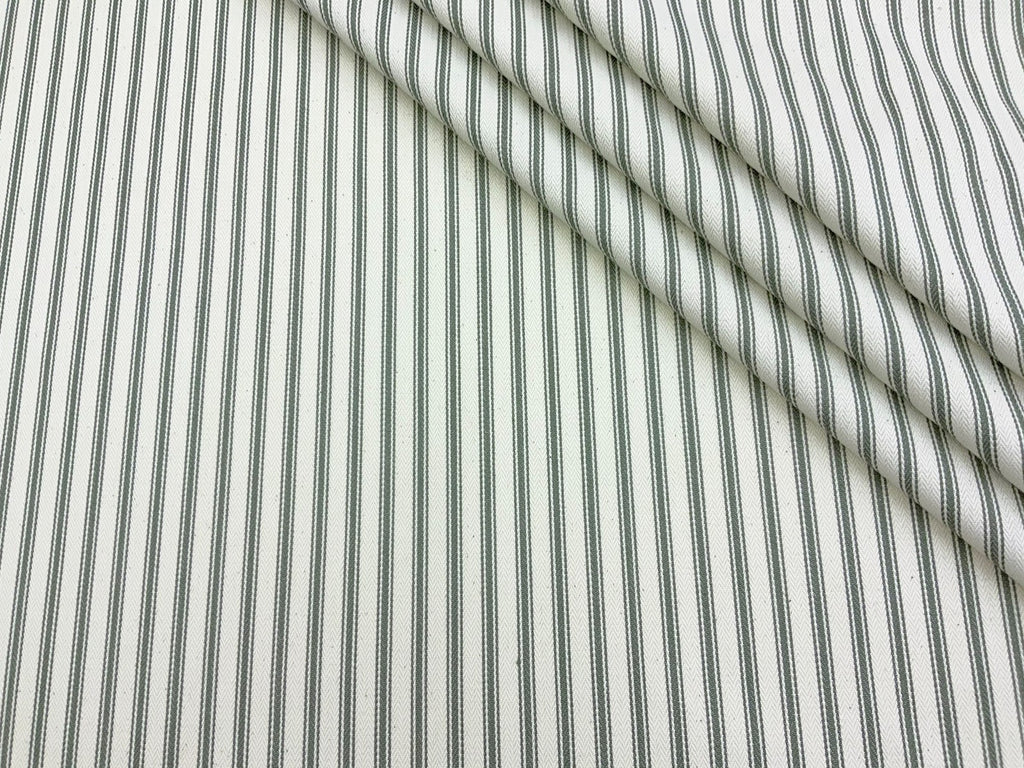 100% Cotton ticking woven stripe curtain, soft furnishing and light domestic upholstery fabric. Free samples available.