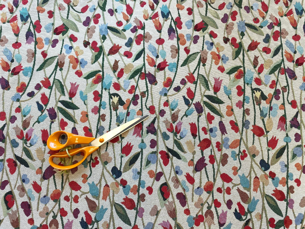 A beautiful floral design tapestry, suitable for curtains, blinds and occassional upholstery.