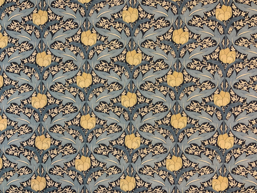 This Tulip design brings together all things Arts & Crafts. Inspired by nature this 75% Cotton 25% Polyester print features vines, leaves and flowers. Even down to the colour palettes used throughout this collection. This fabric would make a strong visual statement made up into curtains/ blinds, but can also be used for soft furnishing projects and even light grade upholstery if you would prefer a more subtle statement.