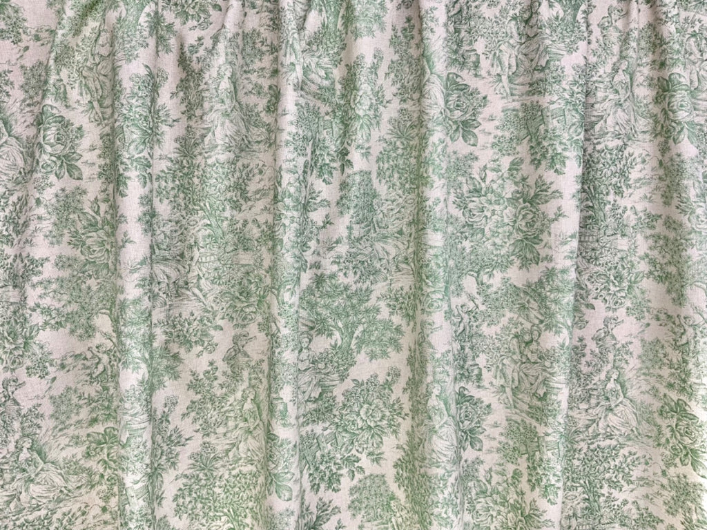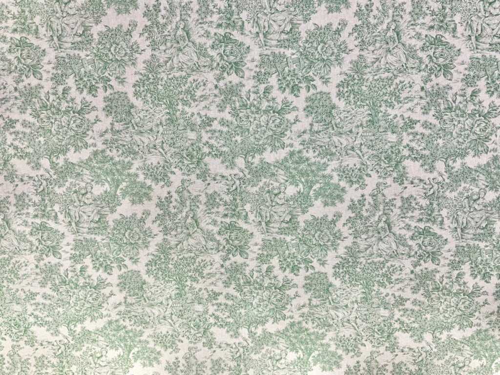 Pretty Toile de Jouy polycotton print suitable for curtains, soft furnishings and occasional domestic upholstery.