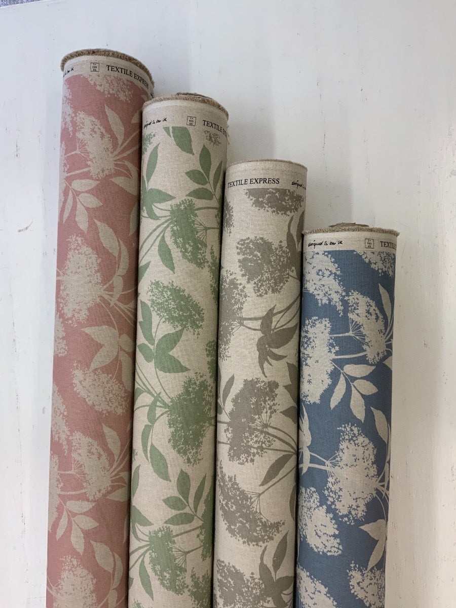 A Textiles Express Original this Elderflower design is printed on a lovely linen look cotton mix. This fabric would make stunning curtains or blinds and also work fantastically for a range of soft furnishings and craft projects.
