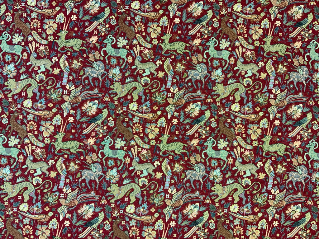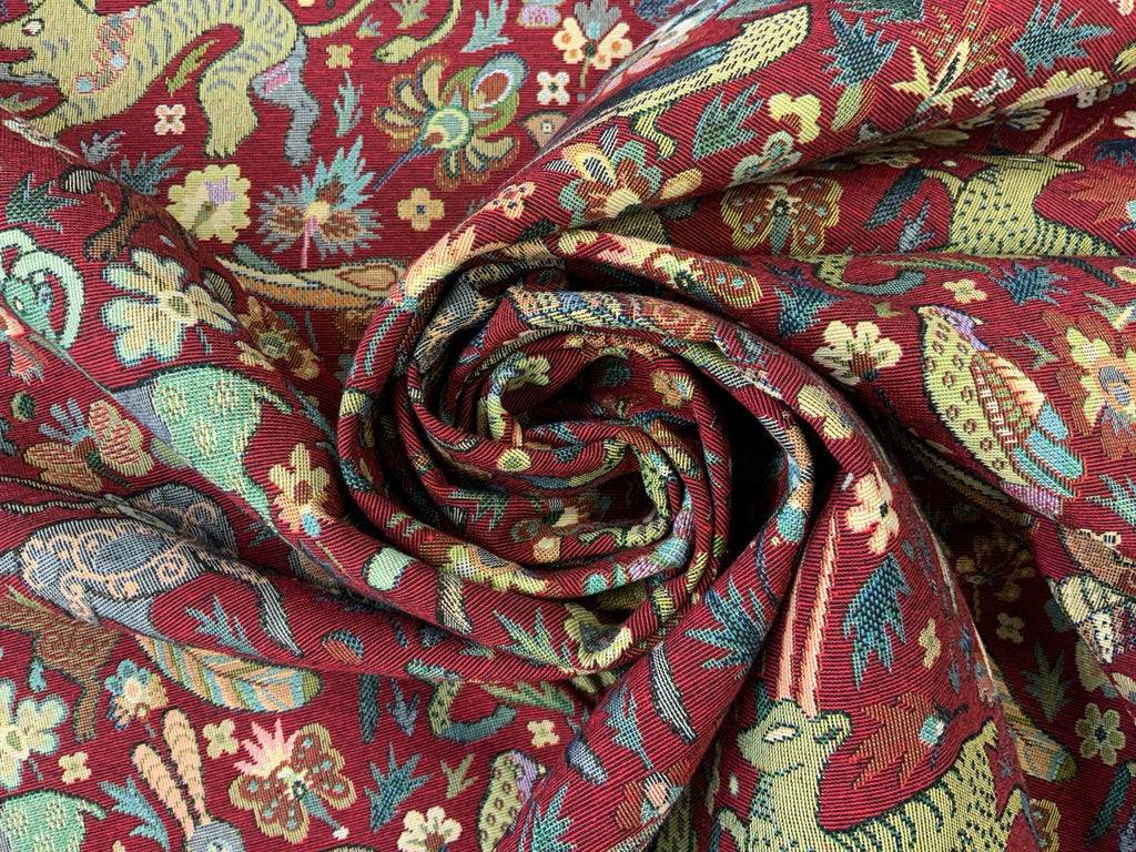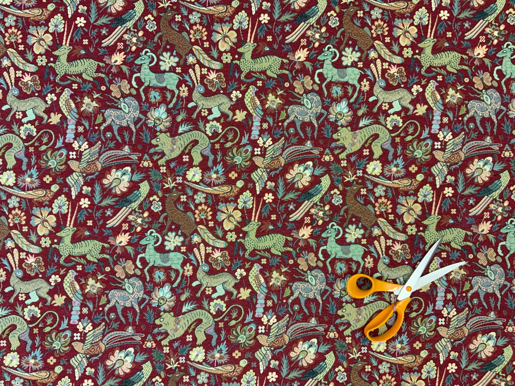 This tapestry fabric is a perfect weight for interiors projects like curtains and cushions, it could be used for very light use upholstery like an ottoman or bedroom chair. These woven designs are also popular for some fashion projects like bags and jackets.
