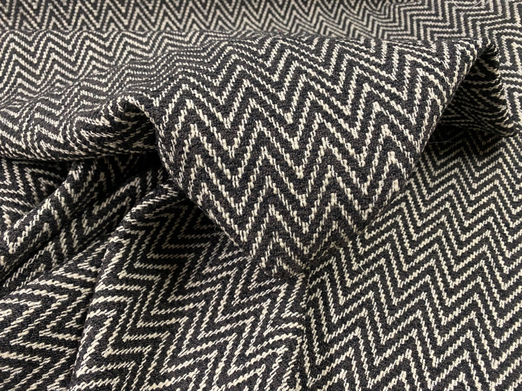 This heavy, textured cloth has a woven herringbone design. Even though the fabric is thick, it is still soft enough for curtains and blinds, yet tough enough that it has a 45.000 martindale rub test for upholstery.