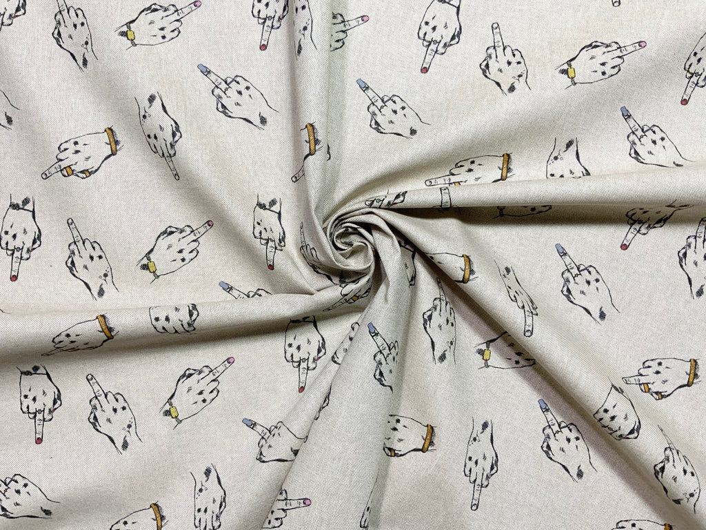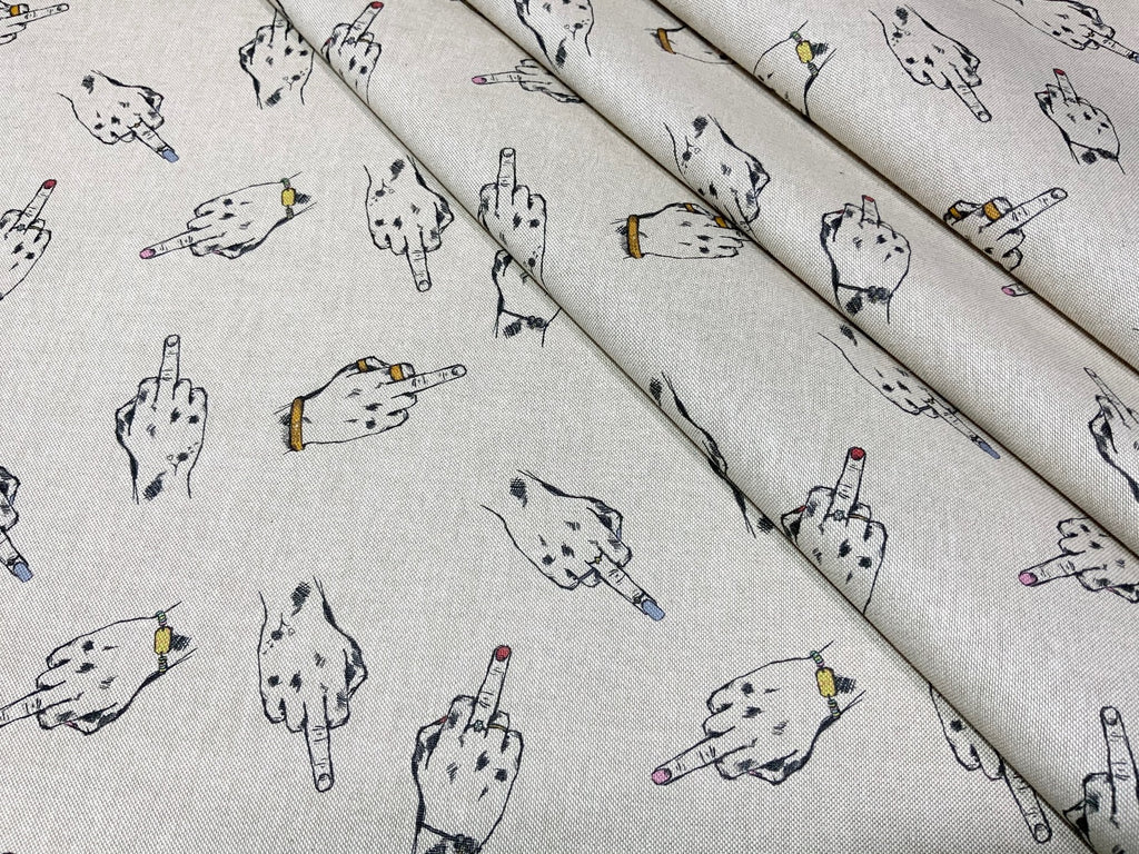 This is a Textile Express Original linen look fabric with an outrageous design! It's not here to offend anyone, it's here for fun!