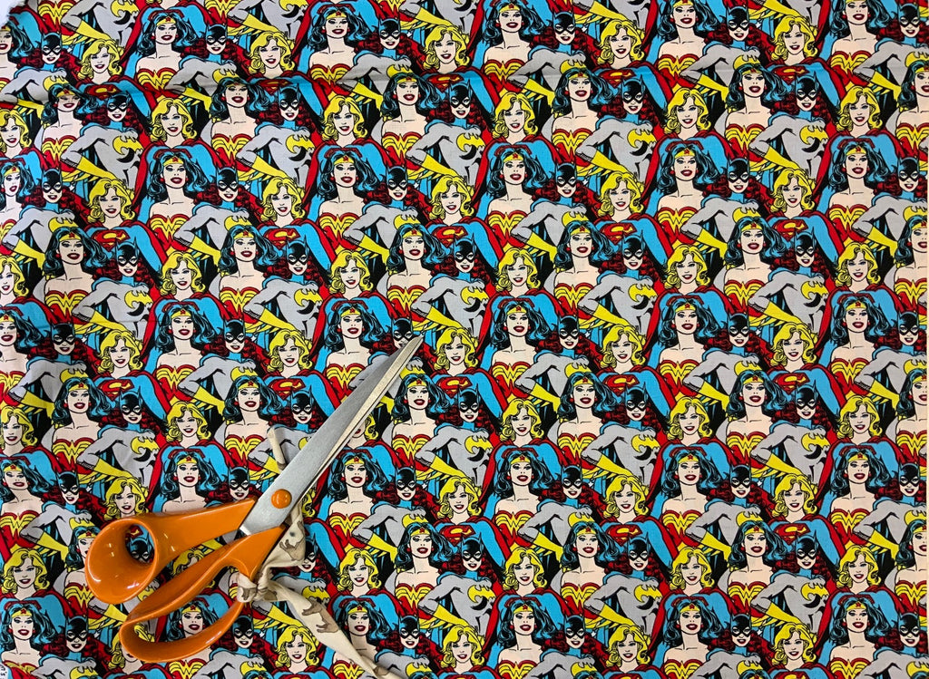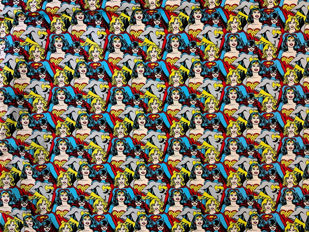 Superhero print, 100% cotton fabric suitable for dressmaking and craft. Free samples available.