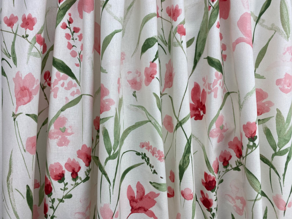 Fresh Spring, Summer floral print, on an off white background suitable for curtains, blinds, light upholstery, soft furnishings and aprons.
