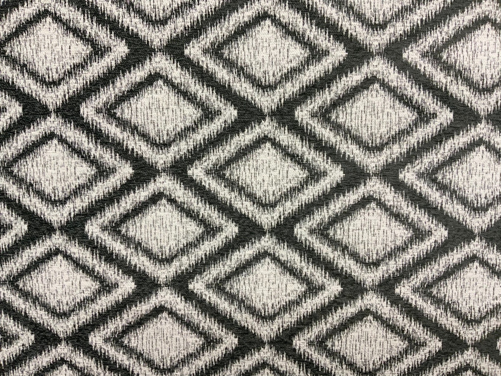 Diamond pattern chenille fabric with a flame retardant coating.