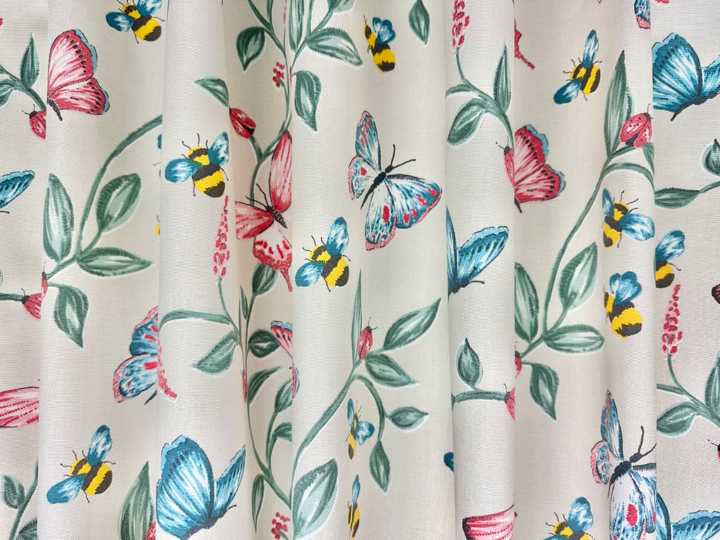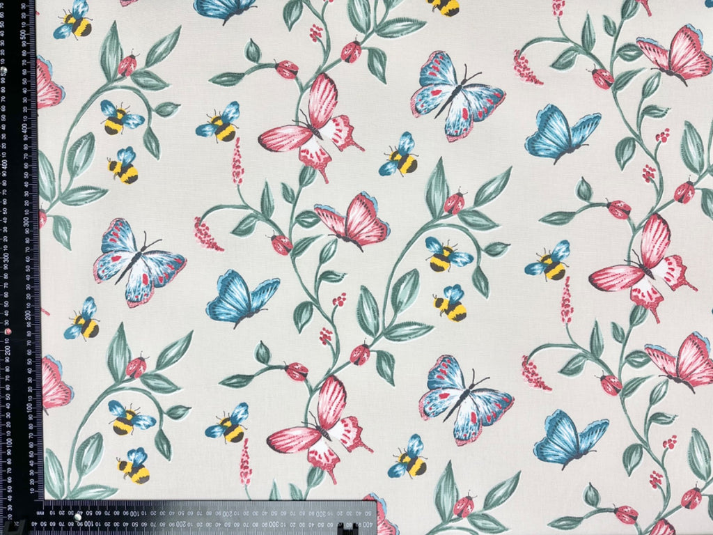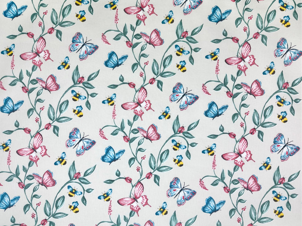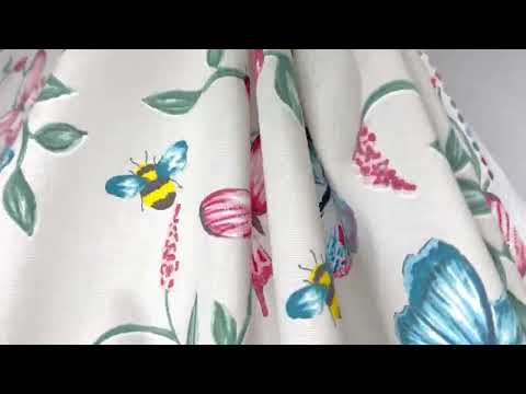 This pretty floral design is printed on a 100% cotton base cloth and is suitable for curtains, soft furnishings and upholstery.
