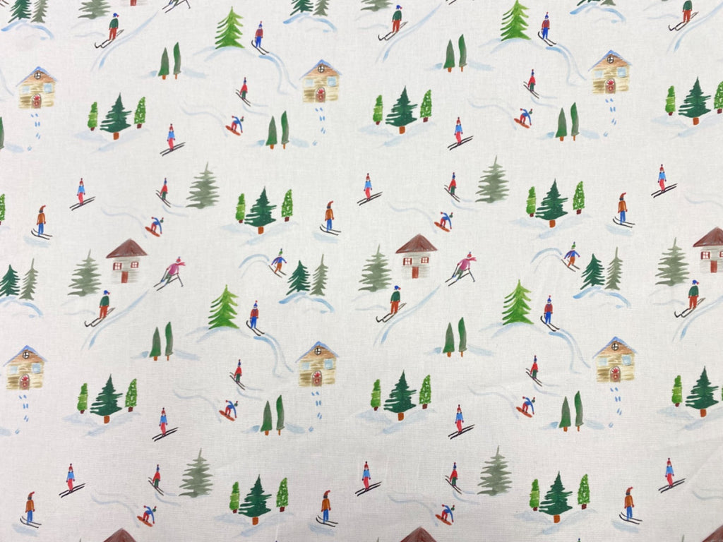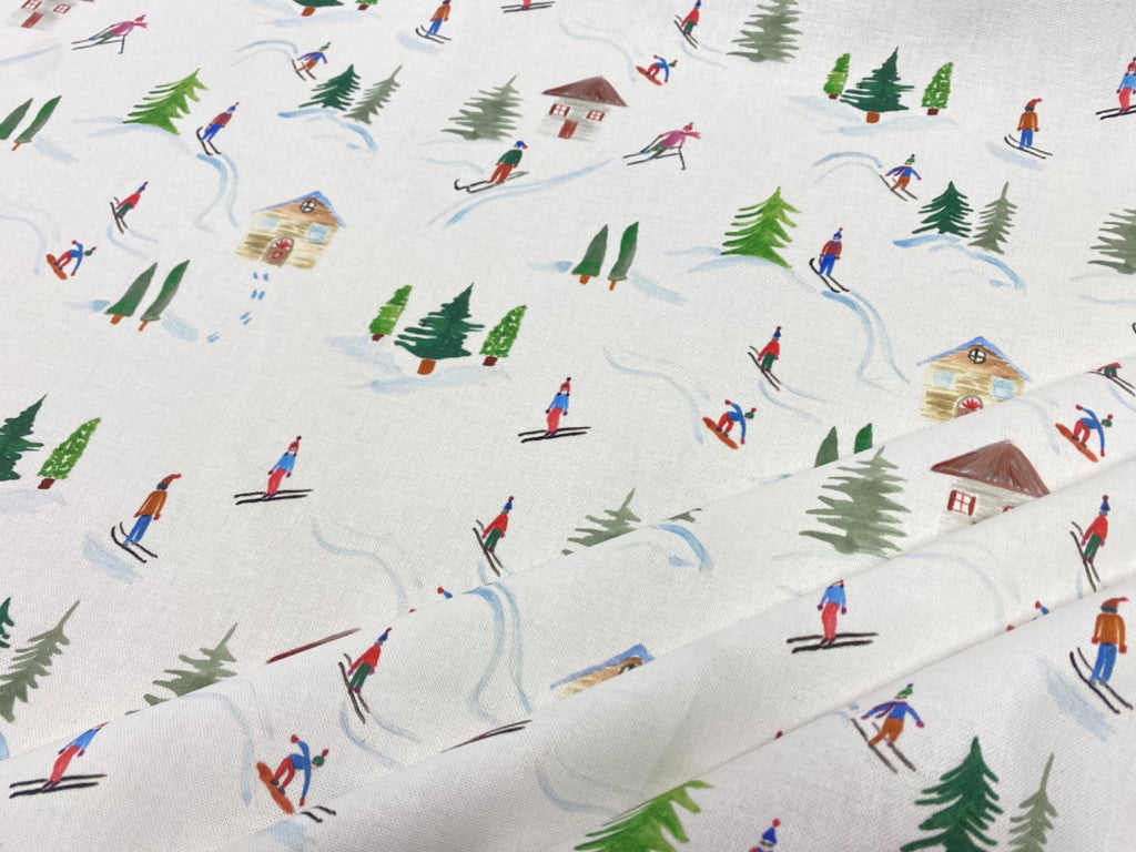 This super fun skiing print is 100% cotton panama base cloth and is suitable for curtains, soft furnishings and light upholstery.